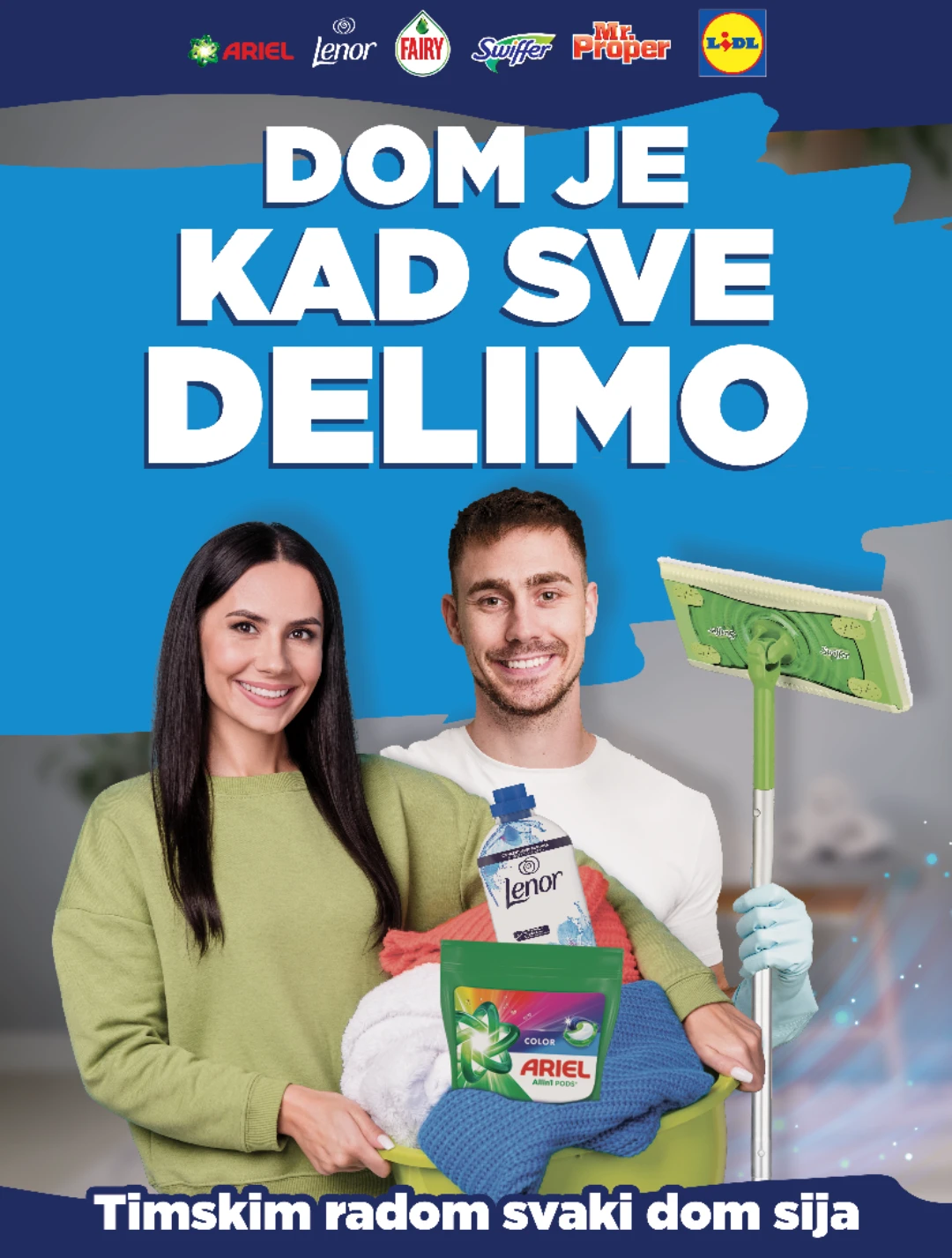 Kako bi podstakla pozitivne promene, kompanija Procter & Gamble, zajedno sa svojim brendovima Lenor, Ariel, Swiffer, Fairy i Mr. Proper, u saradnji sa Lidlom, pokreće kampanju pod nazivom „Dom je kada sve delimo“. Cilj ove inicijative je da promoviše ideju da zajedničko obavljanje kućnih poslova jača porodične odnose i čini svakodnevne obaveze prijatnijim.