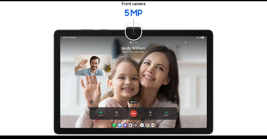 Kad je reč o čuvanju podataka, Galaxy Tab A11+ nudi opcije od 128 GB i 256 GB, dok Galaxy Tab A11 dolazi sa 64 GB ili 128 GB. Oba modela podržavaju proširenje memorije do 2 TB, tako da korisnici bez brige mogu da čuvaju sve svoje fotografije i video snimke. Nova 5MP prednja kamera je savršena za selfije ili video pozive sa prijateljima i porodicom.