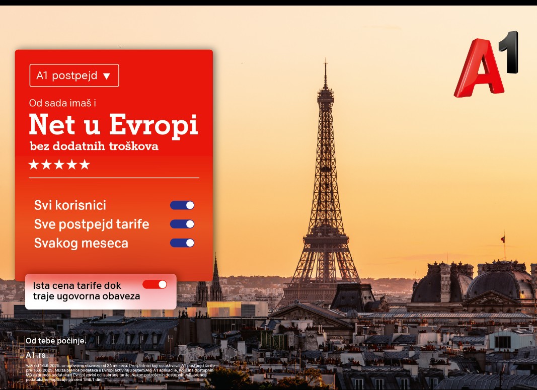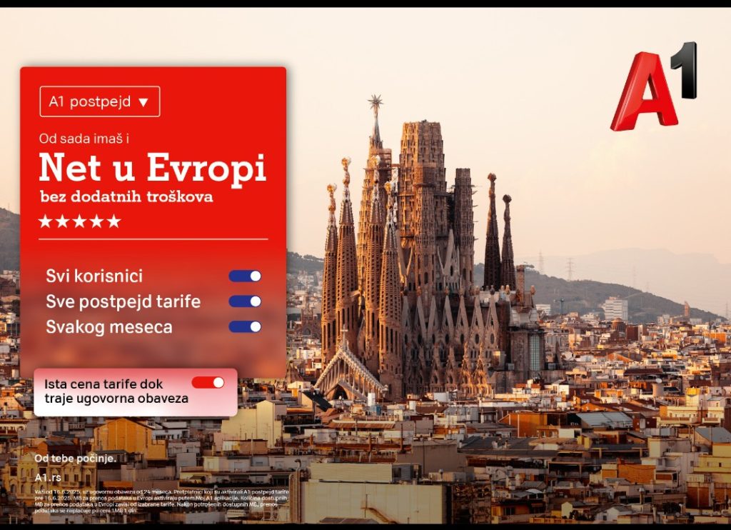 Beogra.. – A1 Srbija je uveo internet u romingu za celu Evropu kao sastavni deo svake postpejd tarife, bez promene cene. Svi korisnici ove mreže od sada mogu da koriste internet u romingu u svim zemljama Evropske unije i u regionu Zapadnog Balkana u okviru svojih postojećih postpejd paketa.