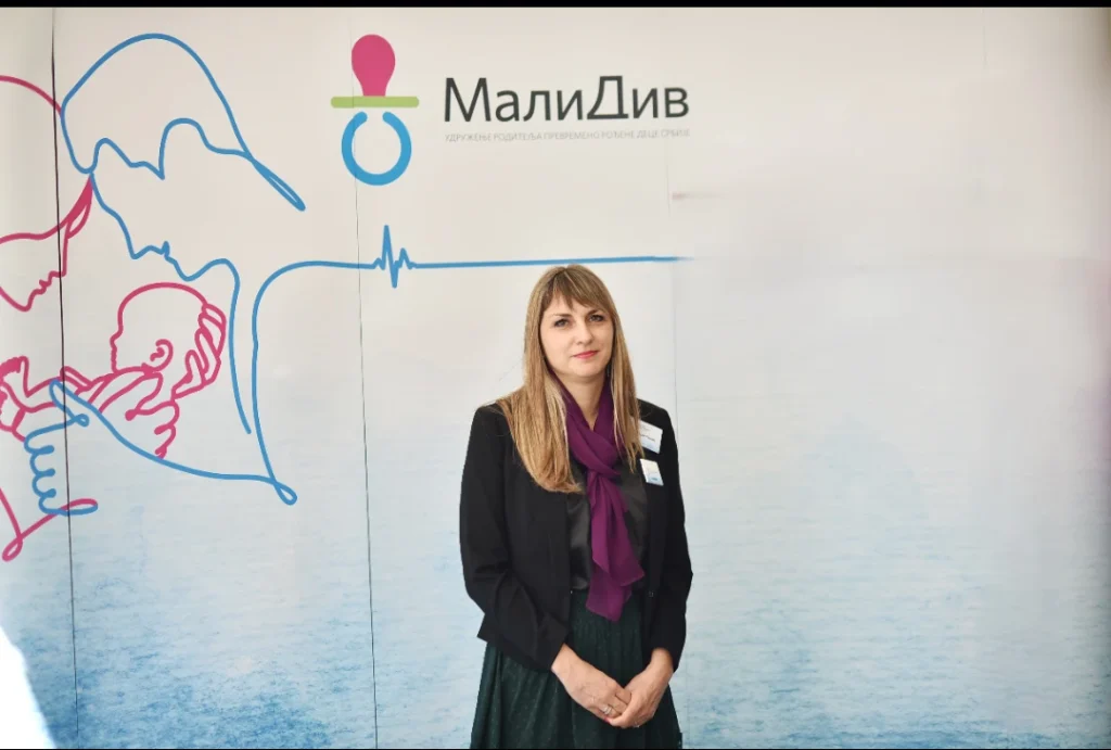 “Udruženja Mali Div od 2010. godine radi na poboljšanju položaja porodica prevremeno rođene dece. Orijentisani smo pre svega na podršku roditeljima u prevazilaženju izazova na koje nailaze kako u prvim danima nakon prevremenog porođaja, tako i u godinama nakon toga, tokom kojih velika većina prevremeno rođene dece ima razvojne smetnje. Cilj radionica koje organizujemo je direktna pomoć roditeljima, dok je Mini park Malih Divova od 17 stabala u Parku Manjež, pre svega namenjen da podseti roditelje prevremeno rođene dece da nisu sami. Istovremeno, ovaj mini park je i način da utičemo na podizanje svesti javnosti o važnosti podrške cele zajednice i države porodicama prevremeno rođene dece,” kaže Vera Bikicki Ivezić, predsednica Udruženja “Mali Div”.