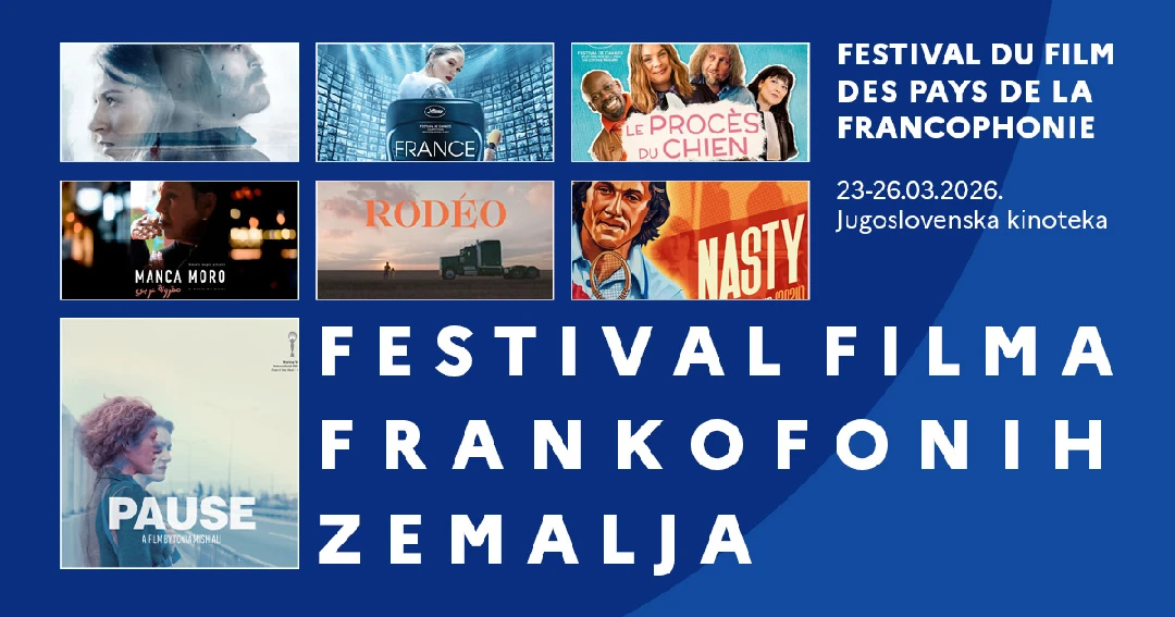 Festival filmova frankofonih zemalja održaće se od 23. do 26. marta u Jugoslovenskoj kinoteci, sa projekcijama u 19 i 21 čas. Festival predstavlja bogatstvo frankofonskih kultura kroz izbor filmova iz različitih zemalja članica i pruža jedinstvenu priliku da se otkrije raznovrsnost i kreativnost ove zajednice, kakva ne postoji nigde drugde. Frankofonija se kroz filmove otkriva u zvuku i slici, spajajući umetnički izraz i kulturnu raznolikost.