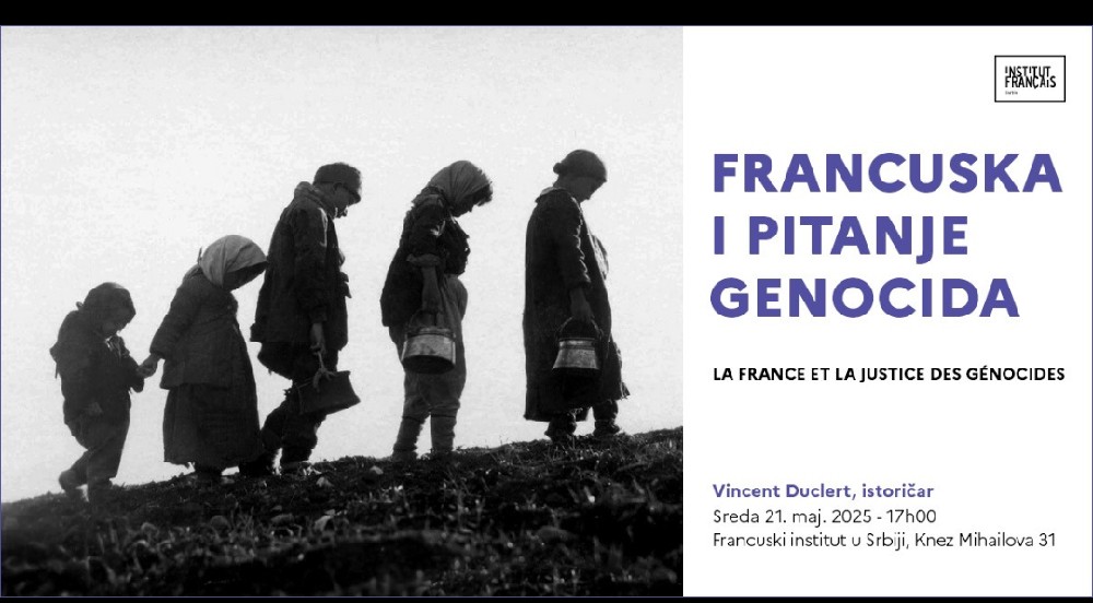 U okviru svog boravka u Beogradu, francuski istoričar Vensan Dikler (Vincent Duclert) održaće predavanje na temu Francuska i pitanje genocida (genocid nad Jermenima, genocid nad Jevrejima i genocid nad Tutsima), u sredu 21. maja u 17 sati u Francuskom institutu (Knez Mihailova 31, Beograd).