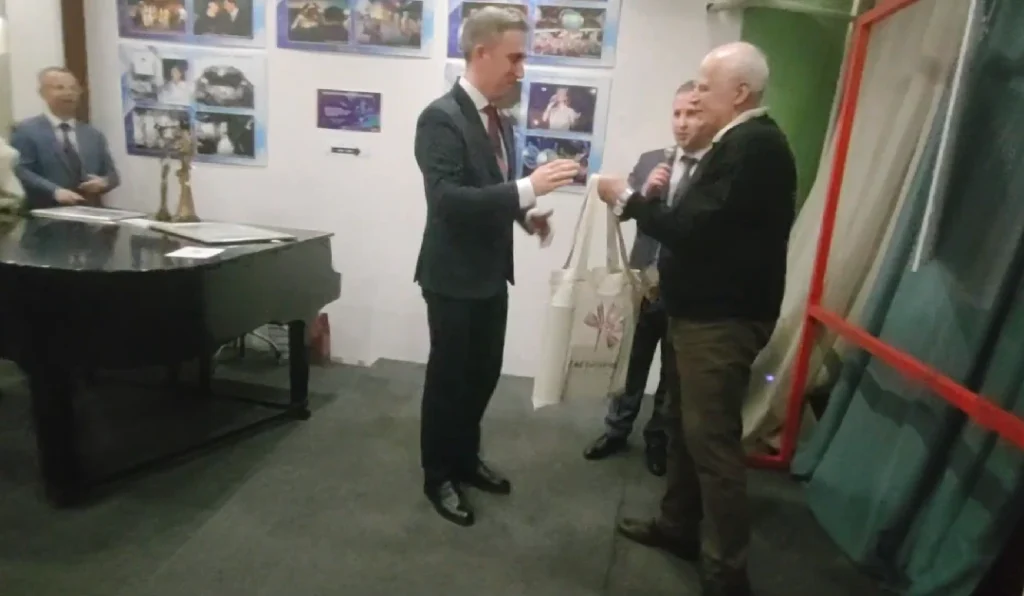 Gleb Lapicki, direktor festivala uručuje priznanje Draganu Škrnjiću.