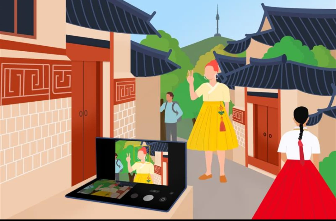 Prvi dan kreće u tradicionalnom selu Bukčon, savršenoj početnoj tački za vaš vlog. Niste poneli stalak za telefon. Nikakav problem. Stavite Galaxy Z Fold7 na neku ravnu površinu, uključite FlexCam i on vas automatski postavlja na središnje mesto na video snimku uz funkciju Auto Tracking i snima sve lepote sela u pozadini.