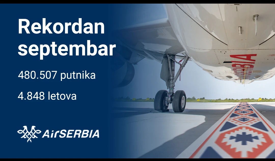 Er Srbija je tokom septembra 2025. godine prevezla 480.507 putnika i realizovala ukupno 4.848 letova, što predstavlja rast u odnosu na isti mesec prethodne godine i potvrđuje nastavak pozitivnog trenda u redovnom saobraćaju. Popunjenost putničke kabine (load factor) iznosila je 79 odsto, što je povećanje u poređenju sa 77,7 odsto iz septembra prošle godine.
