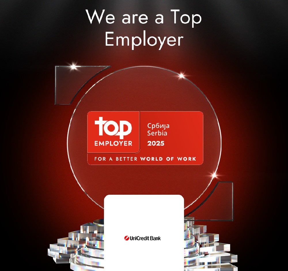Treću godinu zaredom, a ukupno po četvrti put, UniCredit Bank je zvanično sertifikovana kao Top Employer (najbolji poslodavac) u Srbiji, istakavši se u primeni najboljih praksi i politika u oblasti ljudskih resursa.