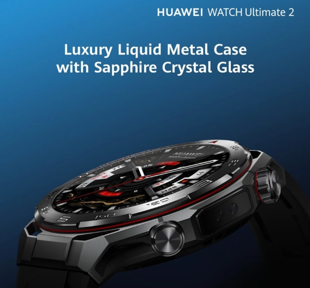Huawei Watch Ultimate 2 dolazi u plavoj i crnoj boji, sa kućištem od cirkonijumskog tečnog metala, keramičkim okvirom sa dvobojnim nanokristalnim slojem i safirnim staklom koji obezbeđuju maksimalnu otpornost na ogrebotine i habanje.