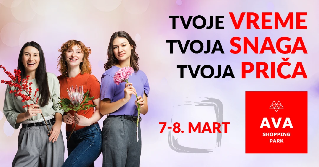 Povodom Međunarodnog dana žena, AVA Shopping Park 07. i 08. marta priprema poseban program posvećen snazi, autentičnosti i pričama koje svaka žena nosi u sebi. Pod sloganom „Tvoje vreme. Tvoja snaga. Tvoja priča.“, posetioci će imati priliku da kroz interaktivne sadržaje i kreativne gestove proslave ovaj praznik na emotivan i nesvakidašnji način.
