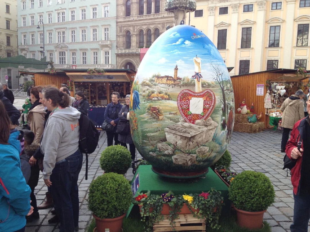 Na starobečkom uskršnjem sajmu na trgu Freyung u starom gradu, svake godine se pravi najveća „planina od jaja“ u Evropi sa oko 40.000 oslikanih uskršnjih jaja. Tu su i brojni uskršnji specijaliteti od testa, kao i rukotvorine, dekoracije od cveća, radionice za decu i pozornica sa lutkarskim predstavama (Kasperl). Muzički program na ovom sajmu počinje svakog dana od 16.30 časova.