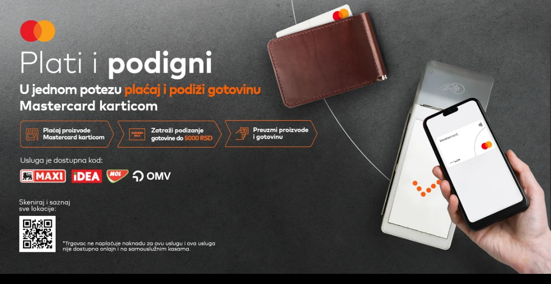 Usluga „Plati i podigni“ omogućava korisnicima Mastercard kartica da prilikom svakodnevnih kupovina brzo i jednostavno podignu do 5.000 dinara gotovi- Kako se približavaju novogodišnji praznici, svakodnevne obaveze postaju intenzivnije, a svaka ušteda vremena dragocenija. U takvim situacijama praktična rešenja koja olakšavaju obavljanje kupovine i plaćanje dobijaju poseban značaj. Jedno od njih je „Plati i podigni“, usluga kompanije Mastercard koja korisnicima omogućava da prilikom plaćanja debitnom platnom karticom kod trgovaca istovremeno podignu gotovinu.