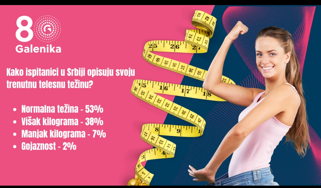 Beograd. – Novo istraživanje o fizičkoj formi i zdravlju u Srbiji, koje je sprovela farmaceutska kompanija Galenika, otkriva jasne razlike u percepciji žena i muškaraca, ali i zabrinjavajuće podatke – preko 40 odsto ispitanika smatra da ima prekomernu težinu ili da je gojazno. Dodatno, četvrtina ispitanika sa viškom kilograma ne preduzima ništa kako bi poboljšao svoje stanje.